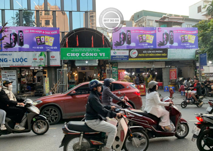 Chợ Cống Vị là khu chợ truyền thống lâu năm, gắn liền với sinh hoạt thường nhật của người dân khu vực Ba Đình. Với đặc thù nằm trên tuyến đường đông xe cộ, khu vực này có mật độ người qua lại lớn từ sáng đến tối. Việc đặt biển quảng cáo tại chợ Cống Vị, Hà Nội giúp thương hiệu tiếp cận đa dạng đối tượng: người đi chợ, người đi làm, cư dân sinh sống xung quanh và cả khách vãng lai.