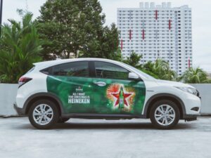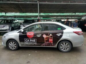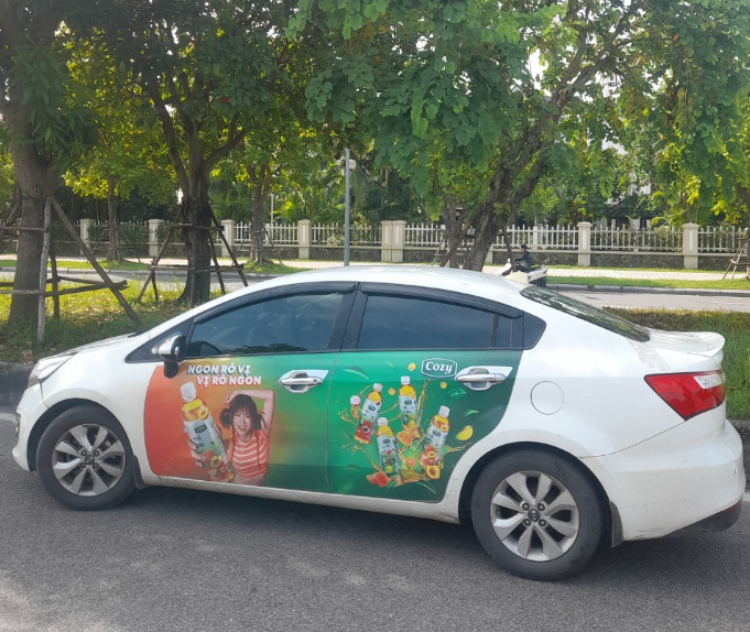 • Ví dụ thực tế: Một thương hiệu nước giải khát đã triển khai dán decal quảng cáo ngoài xe Grab Car chỉ với logo, chai nước nổi bật và khẩu hiệu 3 từ, giúp người đi đường dễ nhớ dù chỉ lướt qua 2–3 giây.