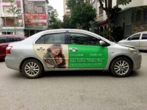 • So sánh thực tế: So với quảng cáo trên xe taxi, mức độ hao mòn có thể tương tự, nhưng Grab Car thường là dòng xe mới, bảo dưỡng tốt nên nếu chọn đúng chất liệu, quảng cáo trên xe Grab Car vẫn duy trì được hình ảnh bắt mắt lâu dài.