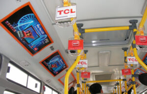 • Đặc điểm: Bao gồm poster dán ở cửa kính, phía trên ghế ngồi, tay vịn hoặc màn hình LCD phát video. Đây là dạng quảng cáo bên trong xe buýt quen thuộc.